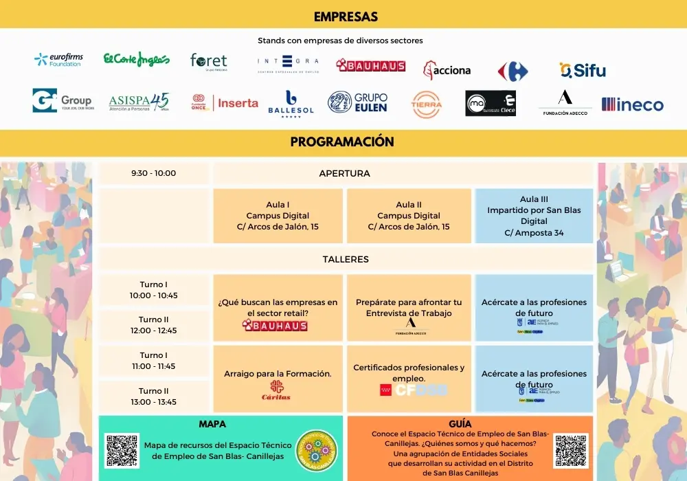 El Espacio Técnico de Empleo San Blas Canillejas te invita a participar en la Feria de Empleo que hemos organizado para ti. Un evento diseñado para conectar talento con oportunidades laborales y brindarte las herramientas necesarias para mejorar tu empleabilidad.